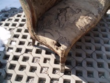Sedačka na odpis ,vše zničené.Kompletně opravená a přečalouněná.Ořech kostra, látku dodal zákazník.Foto hotové sedačky dodám,neskutečná proměna.
