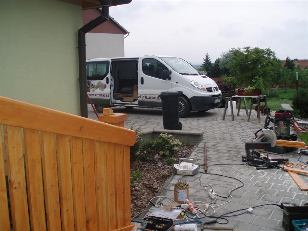 Materiál smrk.Nátěr belinka.Ukotveno na 25mm závitové tyče stavebním lepidlem do betonu.